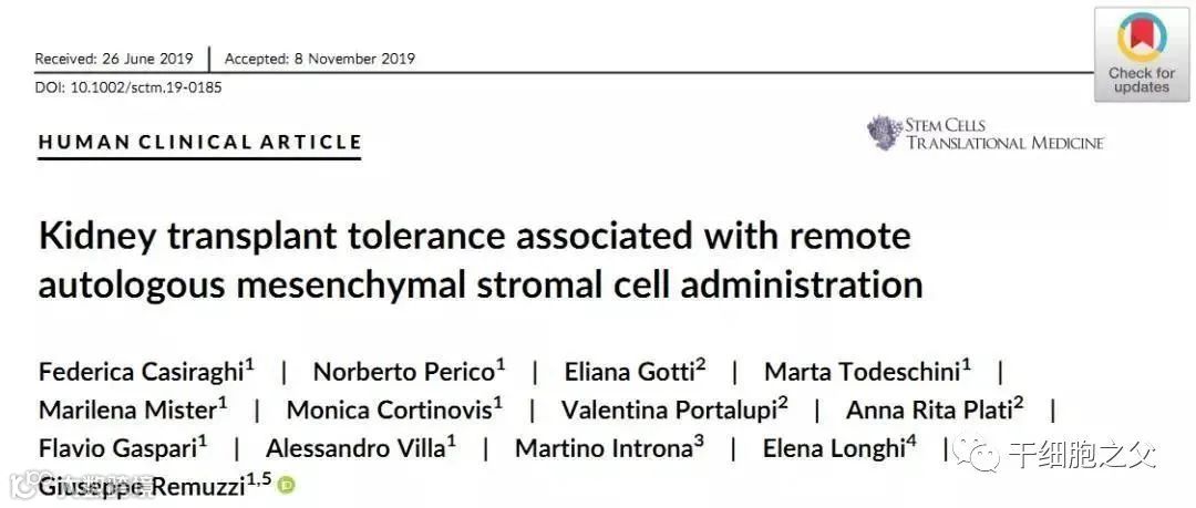 研究人员认为,该病例提供了新的证据,表明在活体供肾移植中,自体骨髓间充质干细胞输注可与移植后晚期安全、完全停用维持性抗排斥药物相关,最终允许免疫耐受状态。