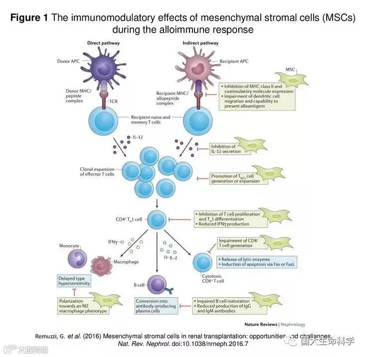 ▲干细胞在同种免疫反应中的免疫调节作用