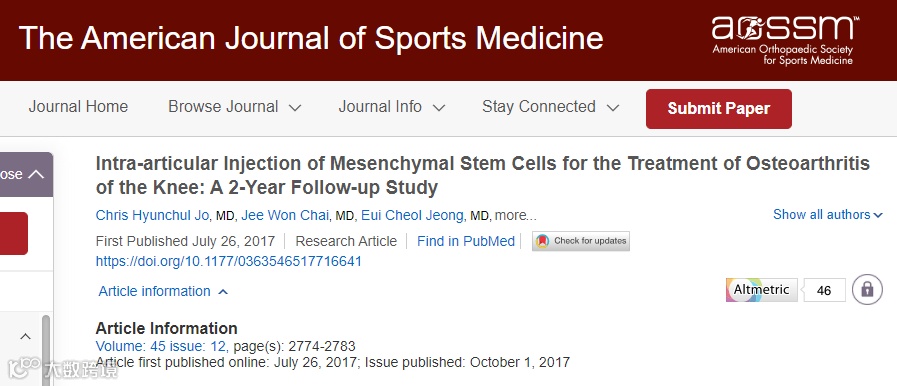 △ 关节内注射间充质干细胞治疗膝骨关节炎:一项为期两年的随访研究