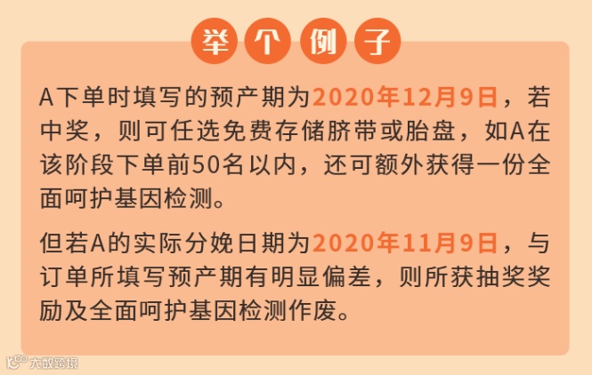 需要注意的是:以上根据下单时所填写的预产期为判断依据,若实际分娩日期与所填的预产期有明显偏差,抽奖所获奖品自动作废,但脐荐康活动津贴不受影响。因此,请填写真实预产期。