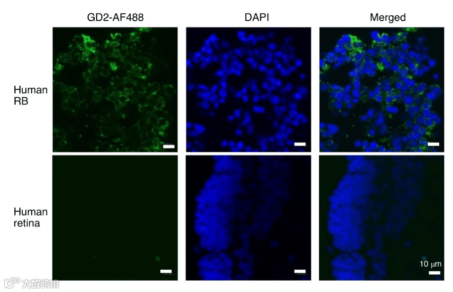 在人的视网膜母细胞瘤中,通常表达神经节苷脂GD2,但在正常人视网膜中却并不表达该物质,尽管GD2 CAR-T在某些神经母细胞瘤患者中具有良好的耐受性并产生了临床益处,但是靶向GD2是否能安全消除眼内肿瘤的可能性尚不清楚。