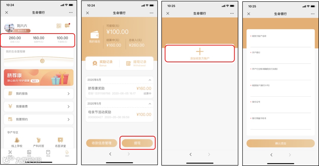 中奖者获得的8888元母亲关爱金大奖,将在预付存储定金的客户前往生命银行平台绑定存储合同后,直接发放至中奖者生命银行个人账户,可提现。