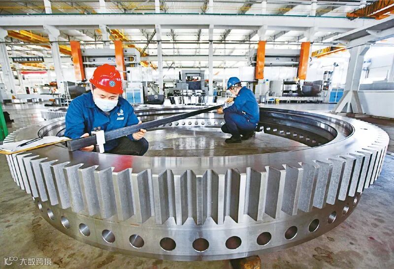 安徽马鞍山经开区方圆精密机械有限公司是国内规模最大的集研发、设计、制造回转支承的专业化生产厂家之一。连日来,公司防疫生产两手抓、两不误,开足马力加班加点生产国内外的订单产品。图为2020年3月17日,该公司技术人员在检验即将发给客户的大型回转支承产品。人民图片 王文生/摄