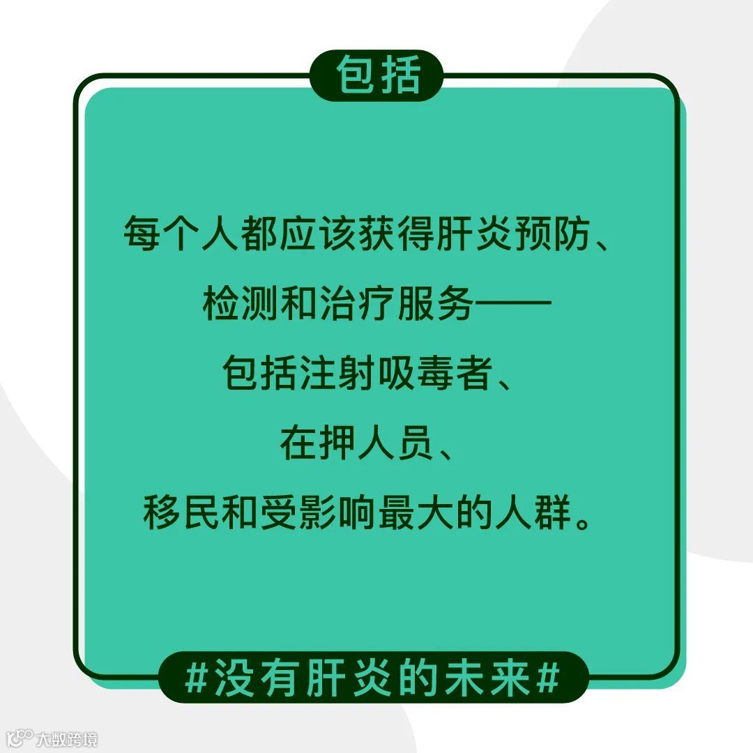 肝炎能够被检测和治疗,一些类型的肝炎可以通过接种疫苗预防。如果所有人共同努力,一个没有肝炎的未来是可以实现的。世卫组织呼吁所有国家共同努力,到2030年消除病毒性肝炎这一公共卫生威胁。