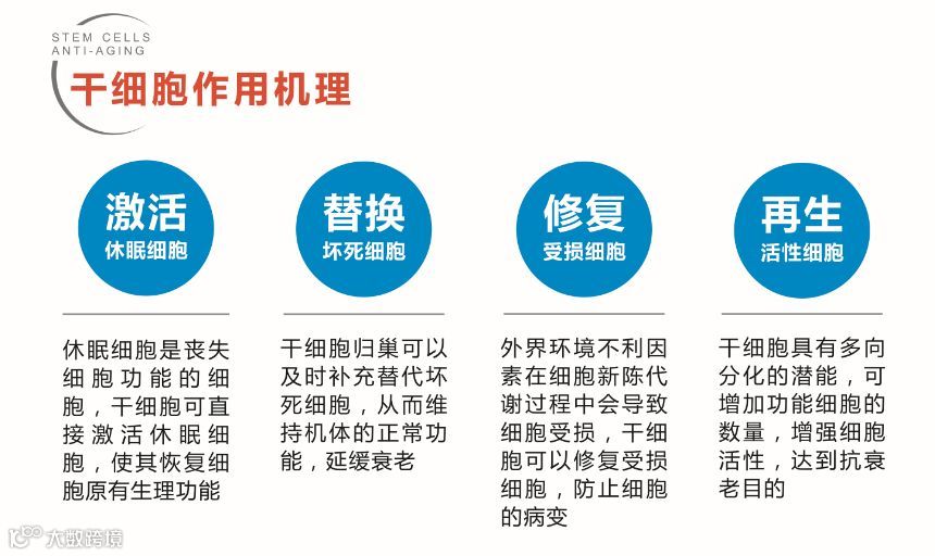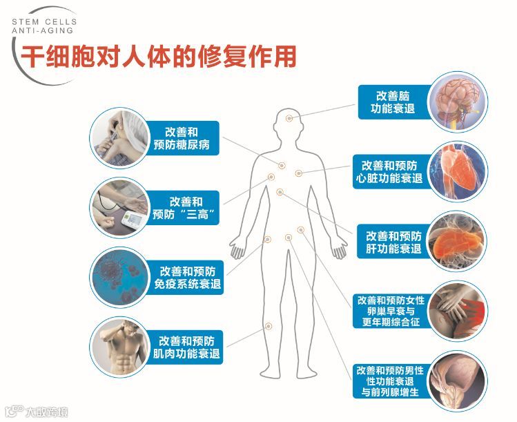 干细胞移植治疗属于细胞生物疗法,是通过在体外鉴定、分离、纯化人体多种组织中来源的细胞后得到临床治疗所需要的干细胞;经过静脉注射或介入等方法进行回输干预,干细胞靶向移动到受损器官和组织周围,起到促进细胞修复、再生、更新的作用。同时激活人体自身的“自愈功能”,利用干细胞具有自我复制和分化的能力来修复体内受损的细胞或组织,达到机体功能重建的目的。