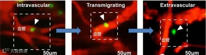 MSC有很强的穿透血管的能力,而且这种能力不受血管通透性的影响,这个在动物实验上得到很好的证明。比如建立皮肤炎症的小鼠模型,给与静脉注射MSC,观察到约47.8%的MSC在2小时后就穿过血管壁进入肌肉组织[28](MSC穿透血管的示意图)。