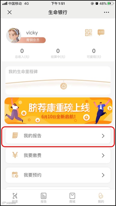 点击微信公众号菜单“我的”,选择“我的报告”点击进入即可查看哦。