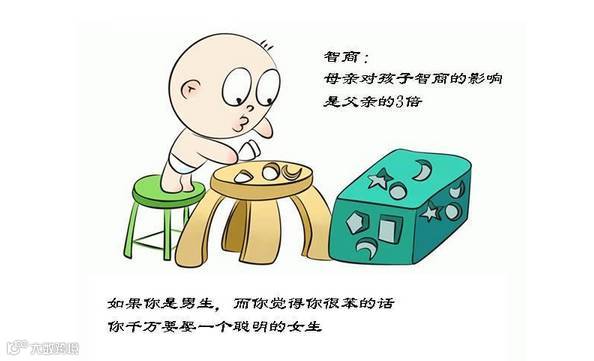 请注意,男生是XY,所以男生的智商全部都来自母亲的遗传,女生是XX,所以女生的智商是父亲跟母亲各有一半影响。