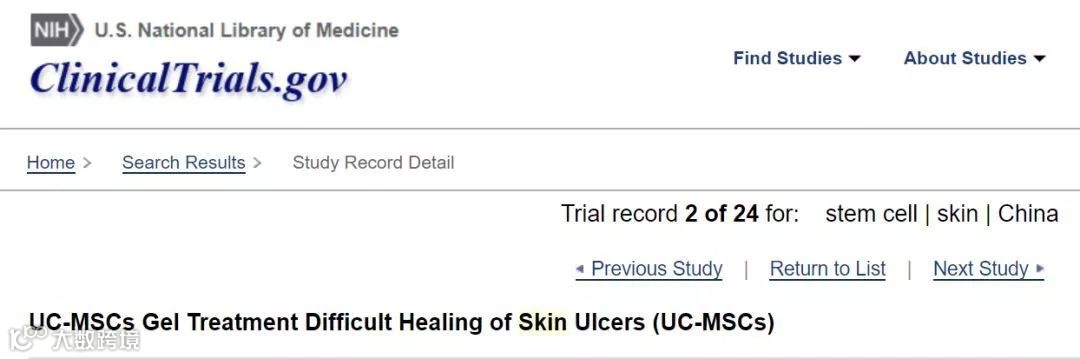 2016年,中国人民解放军总医院首席研究员傅小兵发表了一项为期6个月的《脐带间充质干细胞凝胶治疗难治性皮肤溃疡愈合疗效》试验,该试验共招募20名皮肤溃疡难以愈合的患者,随机分为脐带间充质干细胞组和其他治疗组,通过伤口愈合时间的情况决定采用二次治疗,观察临床疗效和安全性,证明了脐带间充质干细胞具有促进创面愈合的作用。