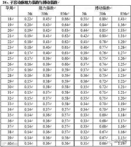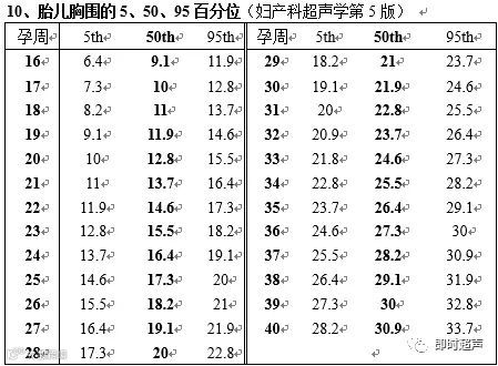 四、胎儿生物测量正常值