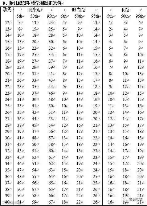 胎儿眼部生物学测量正常值