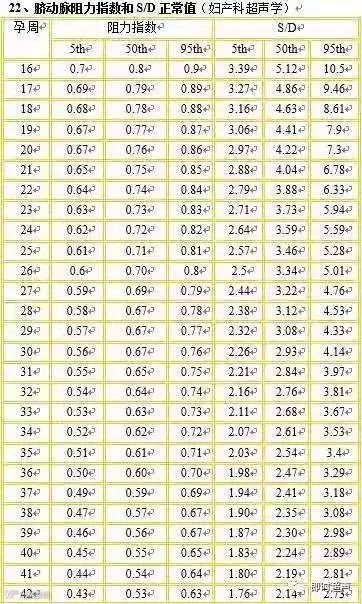 ② 脐动脉标准:晚孕时 S/D > 3;RI>0.75