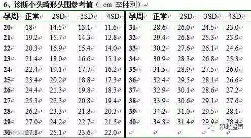 诊断小头畸形头围参考值
