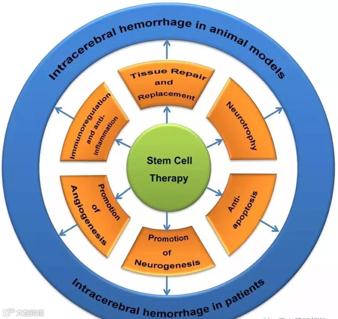 MSCs治疗的最主要目标就是通过抑制免疫反应和消除炎症,从而借助分泌的多种营养性细胞因子保护脑神经细胞,减少神经细胞的损伤和坏死,使得脑出血患者减少脑出血后遗症的发生率和促进康复。