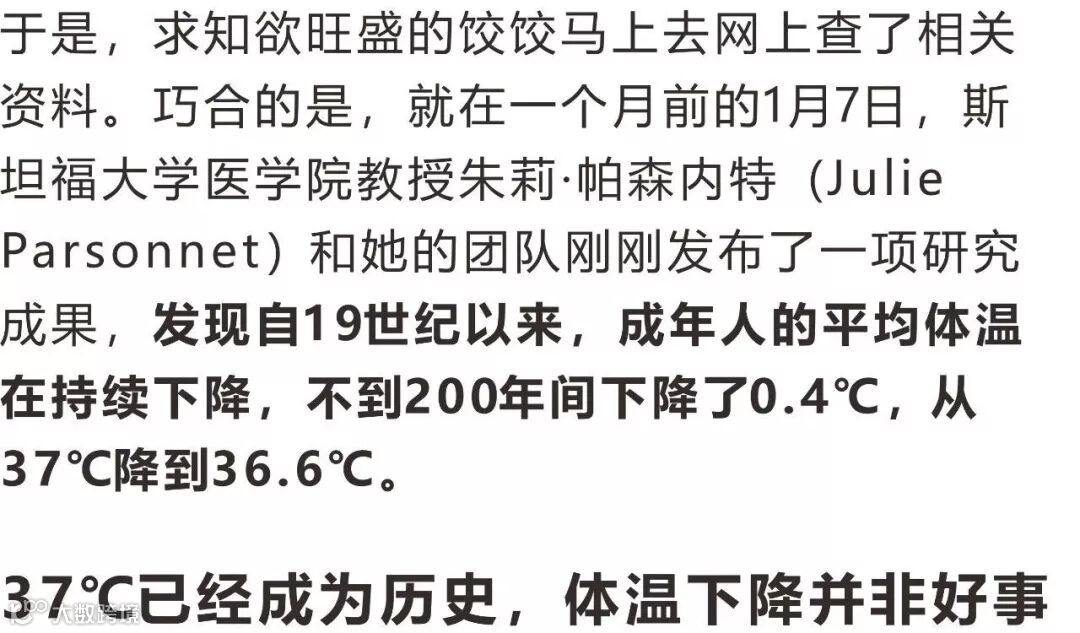但是,近年来,许多科学家认为人类体温在不断下降,37℃已经成为历史。