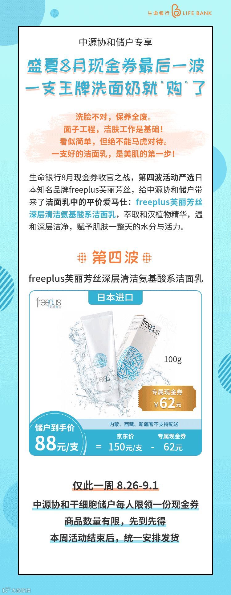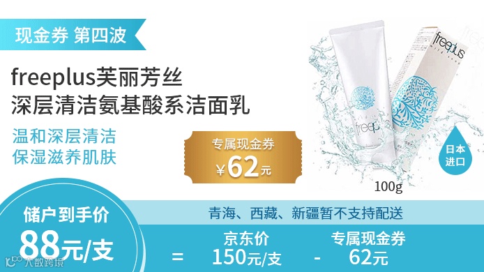 用户注册生命银行即可领取62元现金券,freeplus 芙丽芳丝到手价仅88元/支,还是目前全网最低折扣的价格哦!