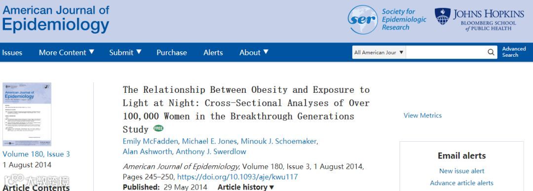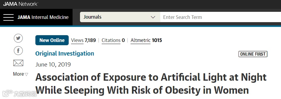 文章题目为《Association of Exposure to Artificial Light at Night While Sleeping With Risk of Obesity inWomen》
