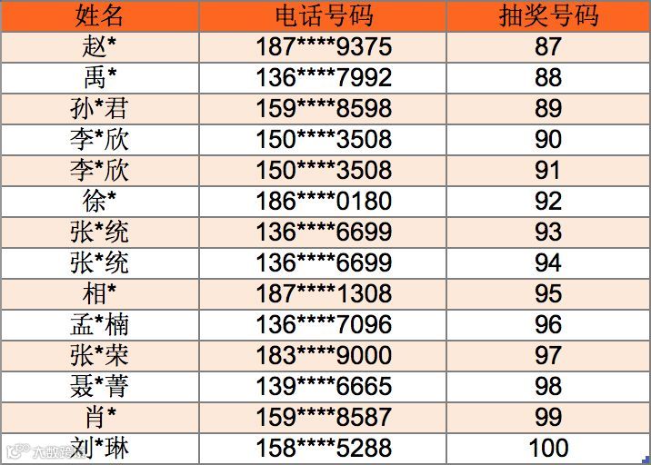 每形成一个抽奖小组,我们会在公众号中公布该组的100名客户名单,请您随时关注微信公众号。