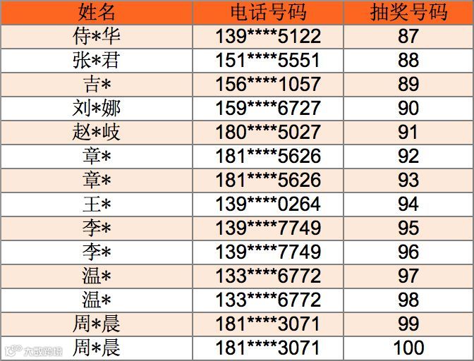 每形成一个抽奖小组,我们会在公众号中公布该组的100名客户名单,请您随时关注微信公众号。