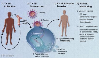 2015年9月,来自宾夕法尼亚大学的科学家们通过研究,成功利用CAR-T细胞疗法对晚期难治性多发骨髓瘤患者进行了治疗,在经过高剂量马法兰和自体移植后输注CTL019后,患者的病情获得了持久的完全缓解[15]。