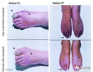 国内有研究团队,将28名患有糖尿病的危重肢体缺血患者,随机分为常规治疗组和移植组,将干细胞多点肌肉注射至缺血肢体,治疗后随访3个月后,与对照组相比,移植组患者大大减轻疼痛和溃疡、完全愈合率翻倍、无截肢、无不良反应、血管造影评分明显改善。