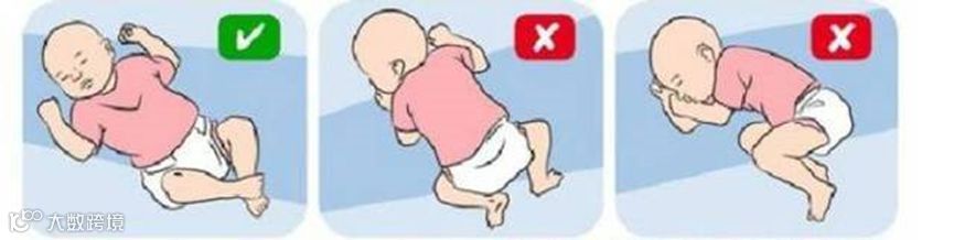 较仰卧位来说,婴儿俯卧位睡眠时发生SIDS的风险高出2.3-13.1倍,侧卧位睡眠则高出2.0-2.6倍。