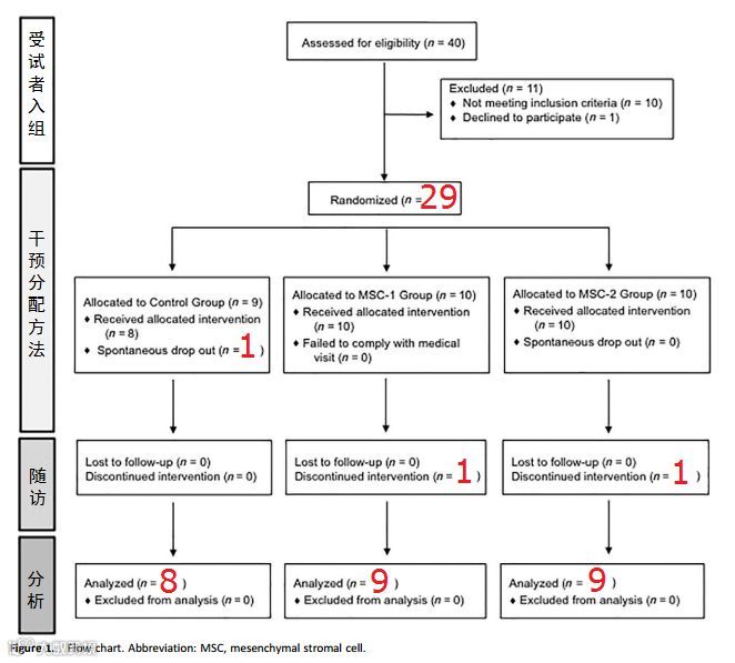 而在不同的MSCs治疗组之间,随访结束的12个月时,双剂量MSCs组的效果要优于单剂量MSCs组。