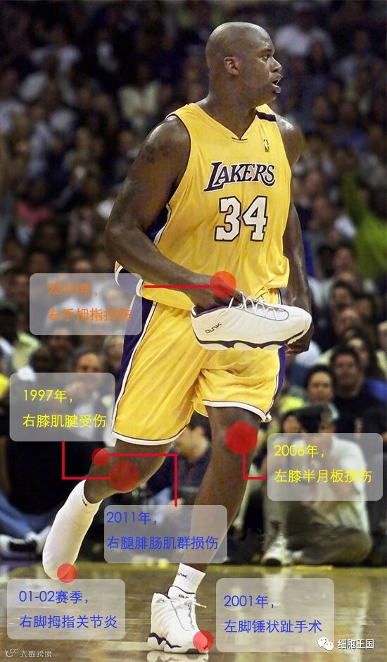 纵观体坛,随着年龄的增长而逐渐受困于体能和伤痛的运动员不在少数。美国运动协会曾经指出,膝部、肩部、脚踝、肘部、肌肉、腰部、胫骨、腹股沟、脑部和跟腱是人体最易受伤的十大部位,跟腱、膝盖和肩膀等伤病影响过许多运动员的职业生涯。