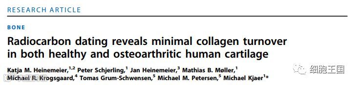 哥本哈根大学的研究者们曾对膝关节软骨中胶原成分的再生情况进行了实地测量。测量结果显示,在发育成熟之后,人们关节软骨中的胶原蛋白骨架几乎就再也没有更新过了[3]。在这里,研究者们就提取了人类膝关节软骨中的成分进行碳14测定。他们测量的膝关节样本来自1例遗体捐献,以及22位接受膝关节置换手术的患者。