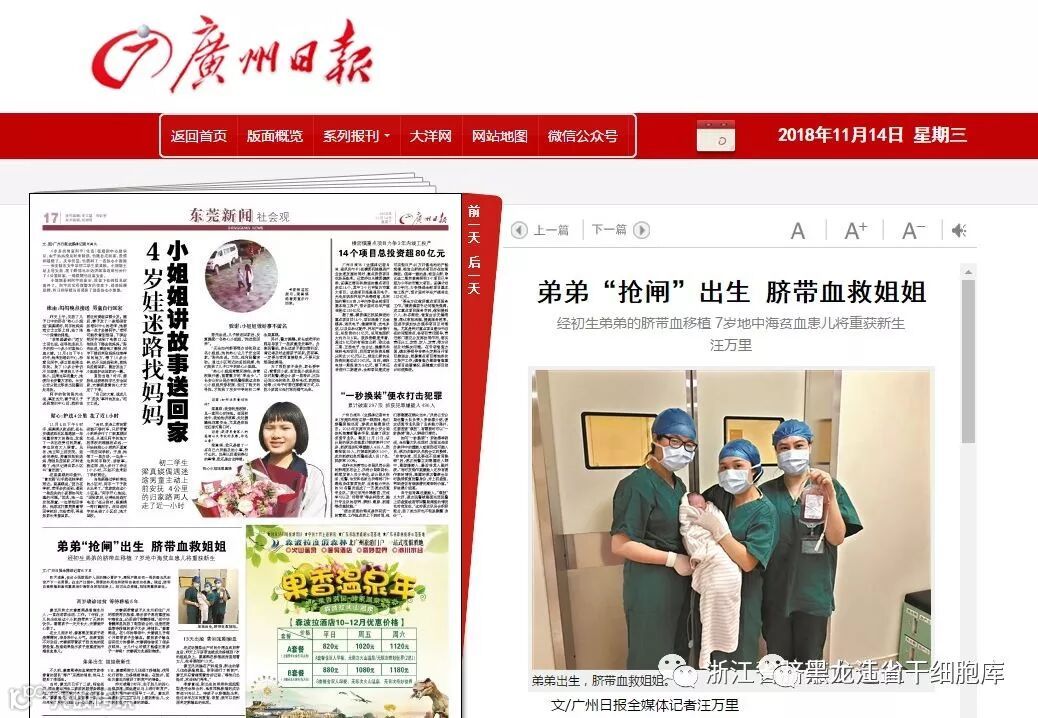 昨天上午,弟弟的脐带血被成功移植到7岁的姐姐身上。
