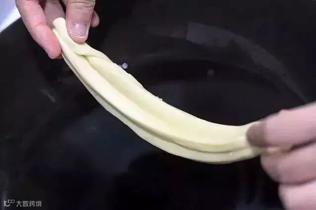 记住做油条胚子的时候,面团、案板、手还有刀上面都要抹油,以防粘连。