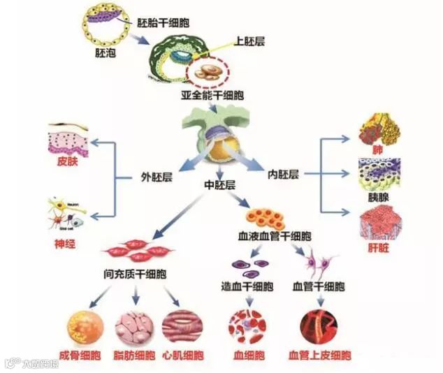 干细胞具有分化潜能,经适当条件下对其定向诱导增殖、分化成相应组织器官,在临床治疗上具有非凡意义,如用于修复损伤组织细胞、替代损伤细胞的功能,或刺激机体自身细胞的再生功能。因此,干细胞的多效应用而得以在医疗领域大放异彩。1