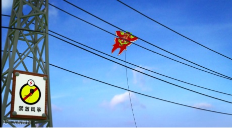 风筝线缠绕在输电线路上会导致输电线路发生接地、相间短路等故障,甚至会造成放风筝人员触电。《电力设施保护条例》规定:禁止在在架空电力线路导线两侧各300米的区域内放风筝。
