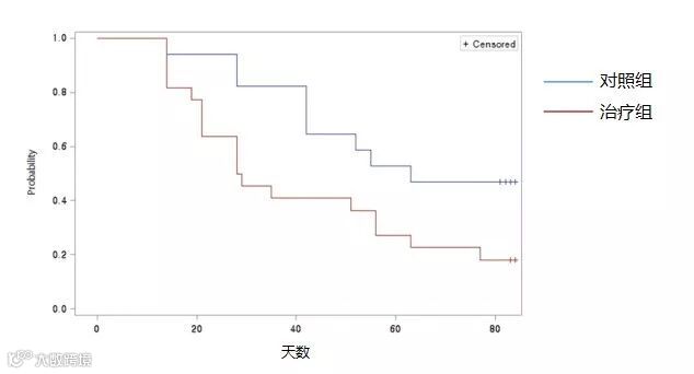 Kaplan-Meier图显示了伤口闭合时间的结果。