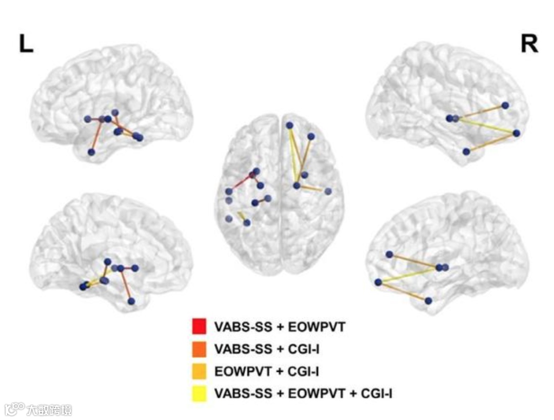 相互连接图 - 额叶、颞叶和皮质下白质连通性变化