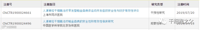 我国实行干细胞项目备案制度之后,已有三个关于帕金森的备案获批:《人胚胎干细胞来源的神经前体细胞治疗帕金森病》(2017年首批)、《人源神经干细胞治疗早发型帕金森病伴运动并发症的安全性与初步有效性评价》、《人源神经干细胞治疗帕金森病的安全性和有效性临床研究》。