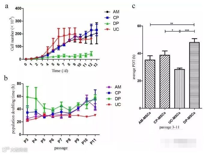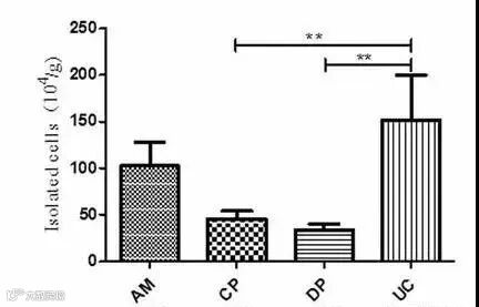 研究者比较了四种围产期组织来源的MSCs:脐带(UC),羊膜(AM),绒毛膜(CP)和蜕膜(DP)。其中后三种属于胎盘组织。