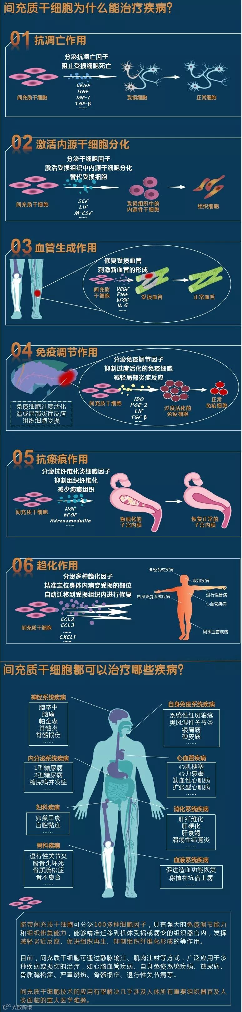 可用于治疗:心脑血管疾病、神经系统疾病、骨组织病、自身免疫性疾病以及肝硬化、缺血性疾病等多种疾病。