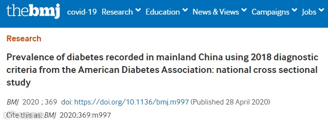 4月28日,《英国医学杂志》刊发了“中国人群糖尿病患病率的最新全国流行病学调查”结果。该研究由中华医学会内分泌学分会名誉主任滕卫平教授、赵家军教授、母义明教授等诸多知名专家共同完成。