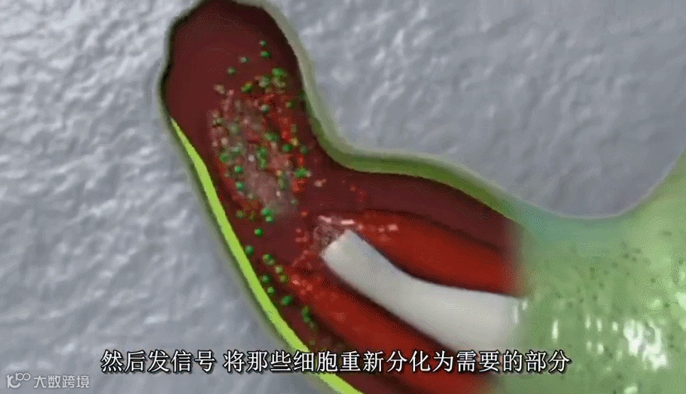 不仅蠕虫会这样,蝾螈甚至能再生出更复杂的身体部位,比如大脑和脊髓,和人类不同,蝾螈从来不会形成疤痕组织,相反,它们身体会发出化学信号,以便将伤口的细胞复原至芽基,然后发信号,将那些细胞重新分化为需要的部分,肌肉、皮肤、软骨或骨骼,科学家称为“伤口表皮”,就是它能让蝾螈在短短几周内再生出四肢。