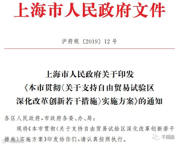 上海市人民政府正式发布了《本市贯彻〈关于支持自由贸易试验区深化改革创新若干措施〉实施方案》的通知,通知中针对干细胞技术及产业发展推出三条全新政策。