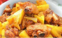 原料:鸡块、菠萝、姜片、酱油、料酒、冰糖、油盐、番茄酱