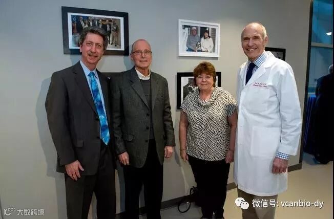 ▲ 由左至右: Bruce Levine、病人Bill Ludwig及他的妻子、Carl June教授