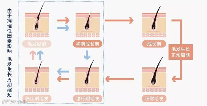 在每一次的毛发生长周期中,对毛囊的激活是先决条件。毛发再生涉及到生长因子、细胞因子、激素、黏附分子的综合作用。如果毛囊内的生长细胞没有被激活,毛发自然脱落后就无法长出新的毛发,造成 " 秃 " 的现象。