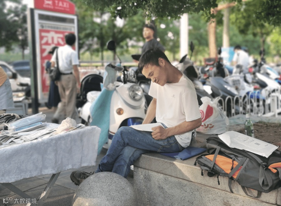不在残疾阴影里坠落,即使身处阴影里也要创造光明。他走起路摇晃的身体令人心疼,但他在闹市中摆摊营生、在车水马龙中读书的身影令人钦佩。