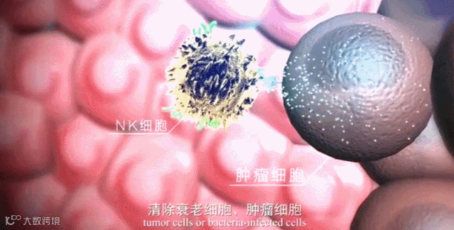 当机体发现细菌、病毒、肿瘤细胞等异物后,首先发挥作用的是先天性免疫系统,他们是机体的常规部队,例如,NK细胞可以探测到肿瘤细胞病菌的相关分子,通过释放穿孔素和颗粒酶,清除衰老细胞、肿瘤细胞以及被病菌感染的细胞。
