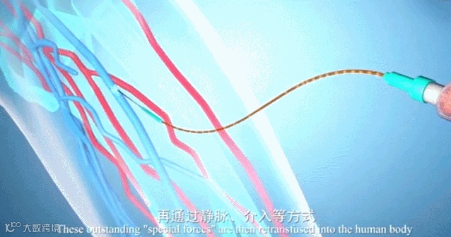 比如,我们可以从血液中采集健康的富有免疫活力的种子细胞,在严格质控的细胞试验室内,完成对这些种子细胞的培养、扩增或改造等特训过程,从而组成一支免疫细胞的特种兵部队。再通过静脉介入等方式,将这些优秀的特种兵输回到人体内。