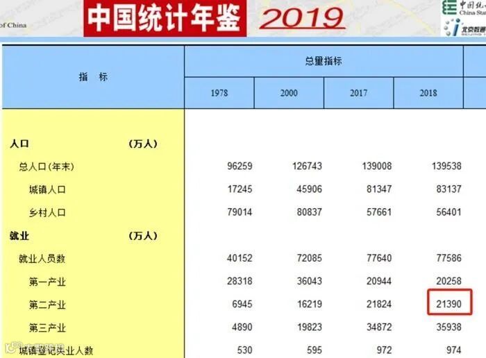 按国家统计局公布的《中国统计年鉴-2019》显示,到2018年,中国从业第二产业的人为2.13亿。按上述条件,假如第三产业全停,只有第二产业从业人员复工,每天也需要超2亿只口罩。