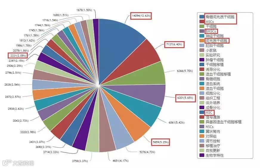 图1:在知网上搜索“干细胞”,间充质干细胞相关关键词占比32%