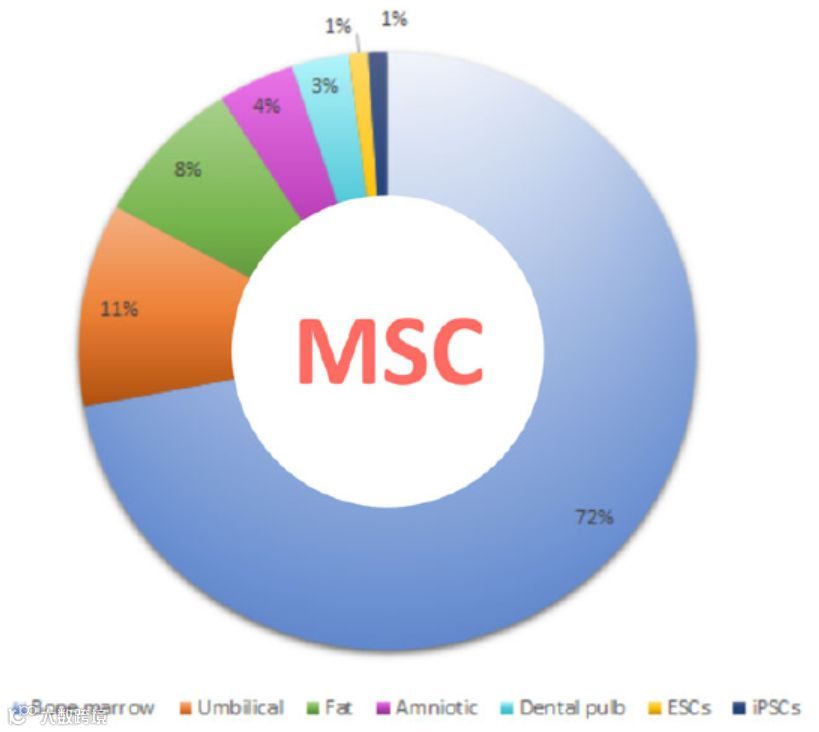 图1. 各种来源的MSCs发表的文章数量百分比(StemCells.)